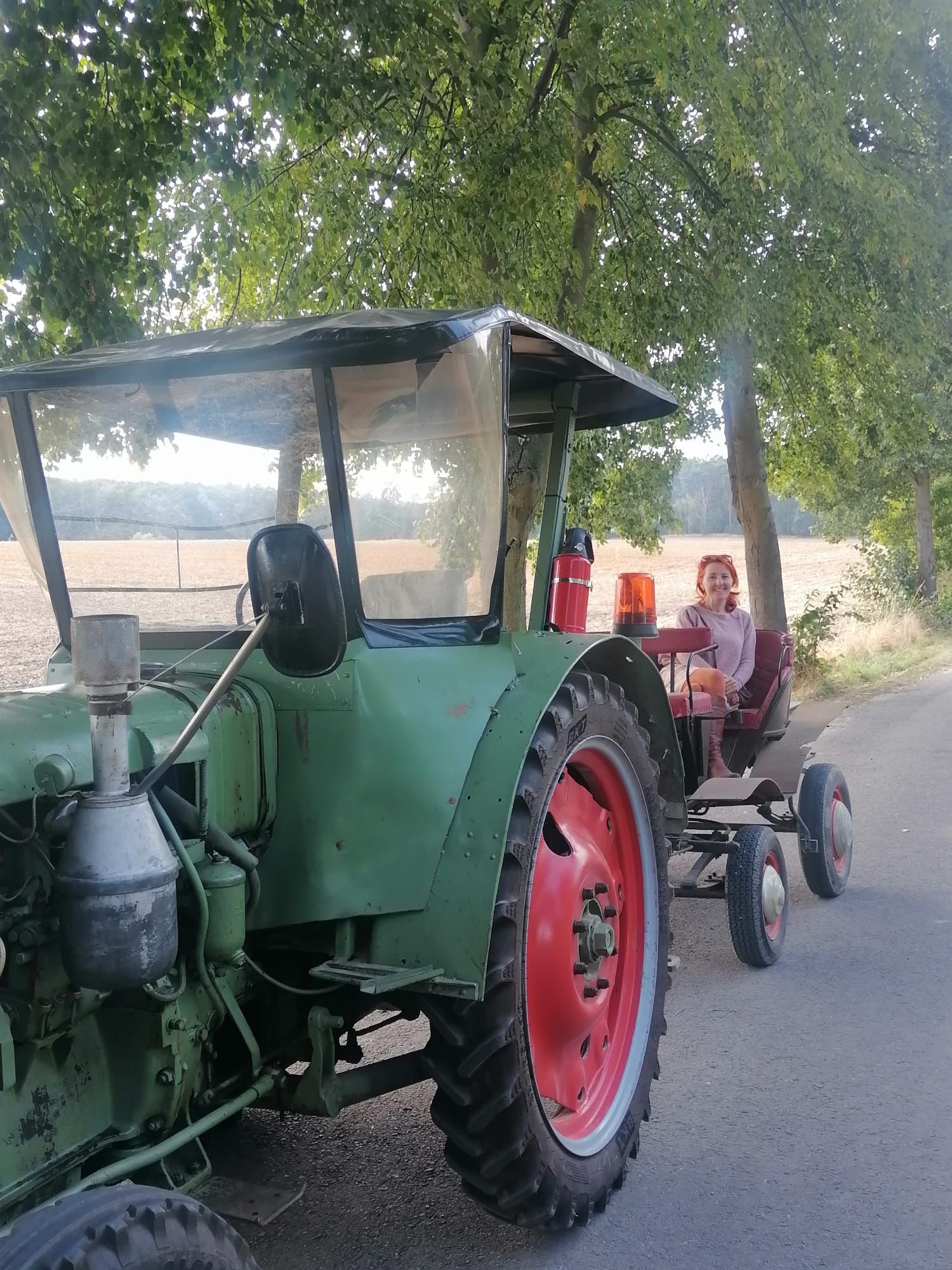 Nach dem Motto " Rosi i hol di mit mei Traktor ab" geht es mit einer nostalgischen Kutsche und dem Trecker ab in Wald und in die Flur.